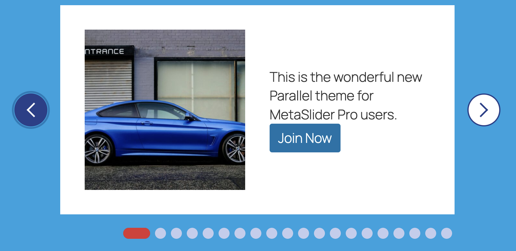 MetaSlider Pro users get a third new theme this month. This new theme is designed specifically for testimonials, or staff profiles. The Praise Loop theme has a large, rounded image at the top of each slide, with room for the testimonial or personal description underneath.