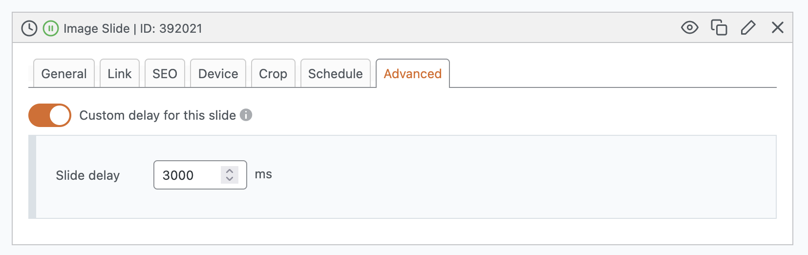 Custom slide delay