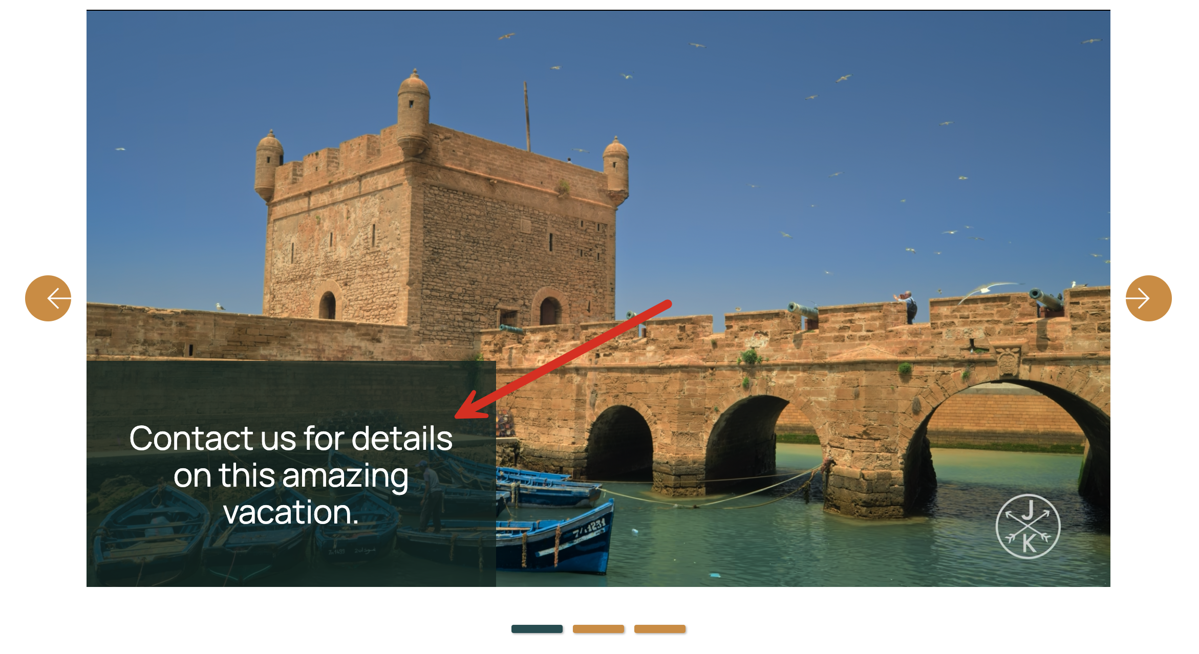 It’s possible to overlay captions on top of your Local video slides, External video slides, Vimeo slides and YouTube slides. This image below shows a caption on top of a Vimeo video, using the “Highway” theme.