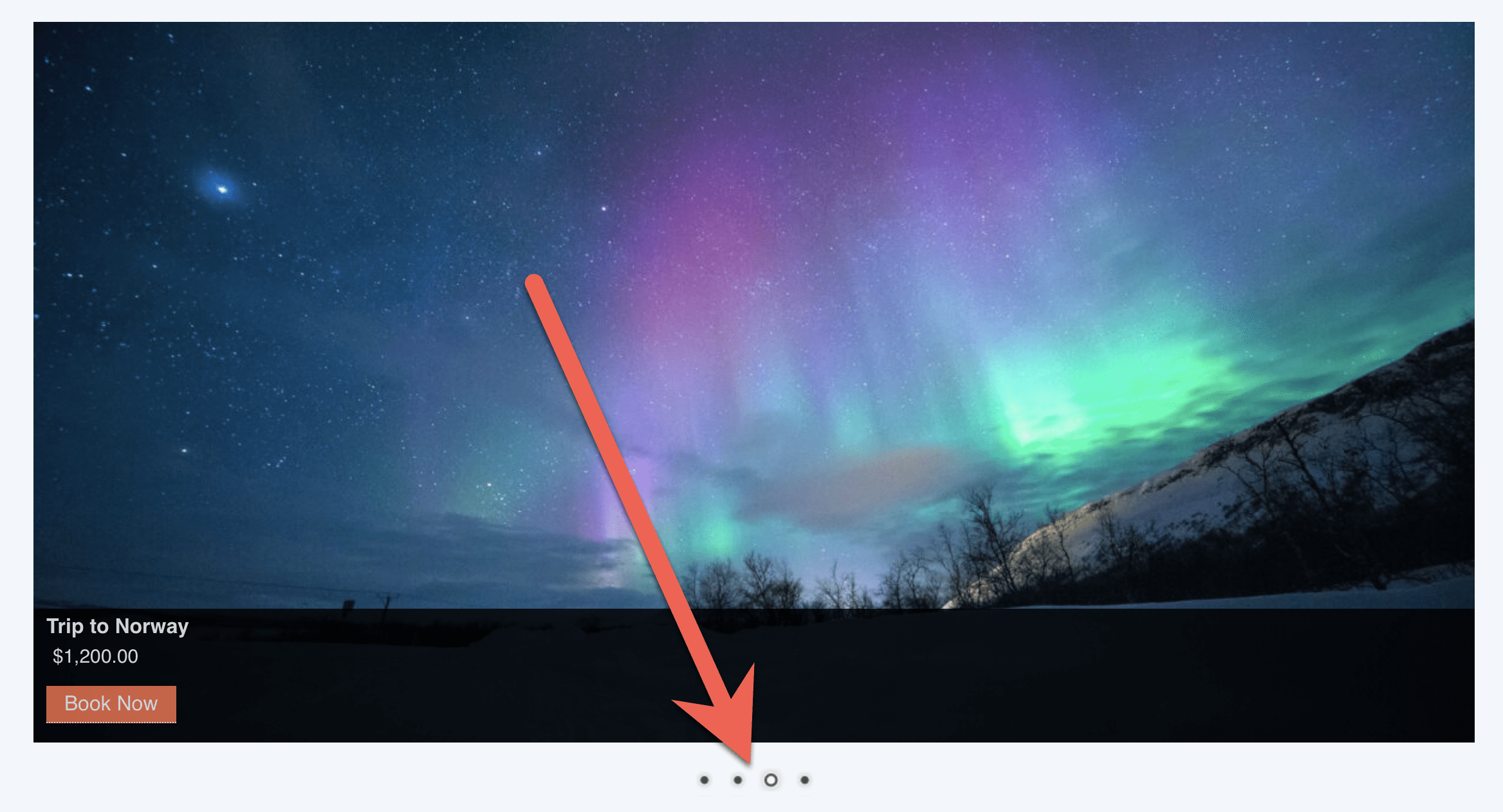 In this screenshot below, you can see the dots. If you click any of these dots, you will be taken to the appropriate slide. Click here to see this slideshow. This design uses the “Databold” theme.