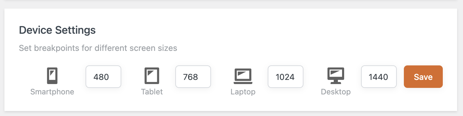 If you want to configure these settings, go to the “Settings & Help” area. You will see the option to choose the breakpoints for the different device sizes.