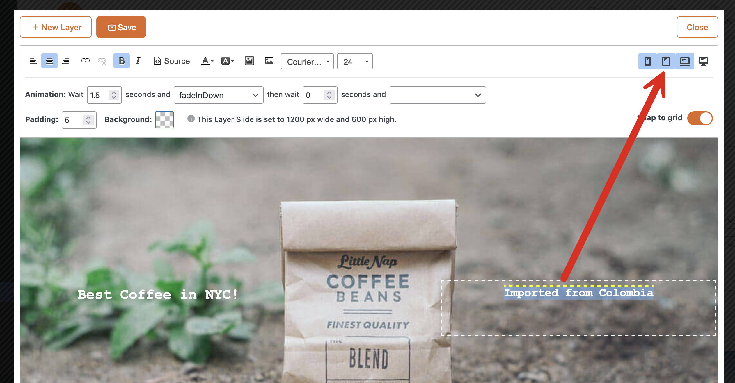 This feature is available inside Layer Slides too. The screenshot below shows the editing screen for a Layer Slide.