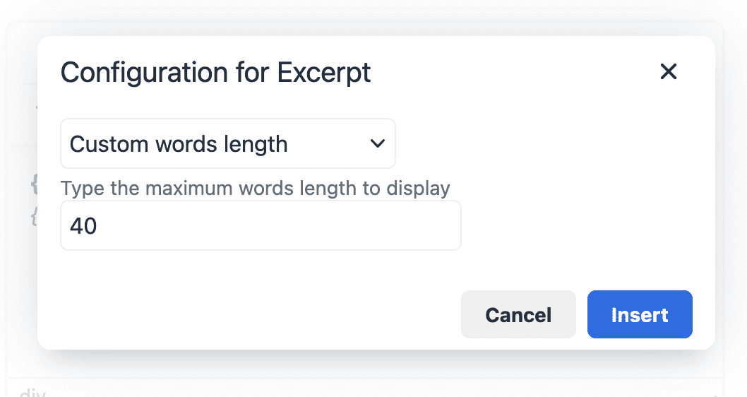 In the next step, you can choose to configure the number of words used in the plugin excerpt, as in this screenshot below: