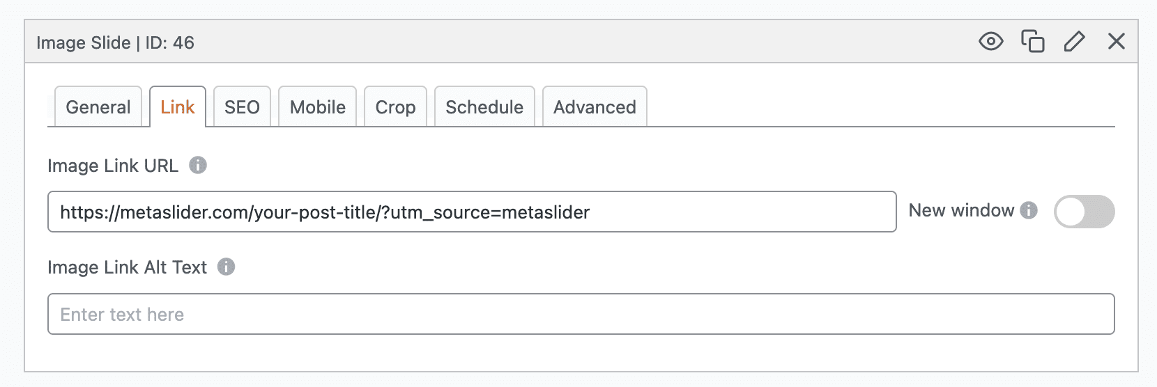 To collect statistics on how many people click on your slides, you can adding a tracking code to the “Link” tab. In the example below, we’ve added a Google UTM tracking code to this single slide. This “Link” feature is also available for Local Video and External Video slides.