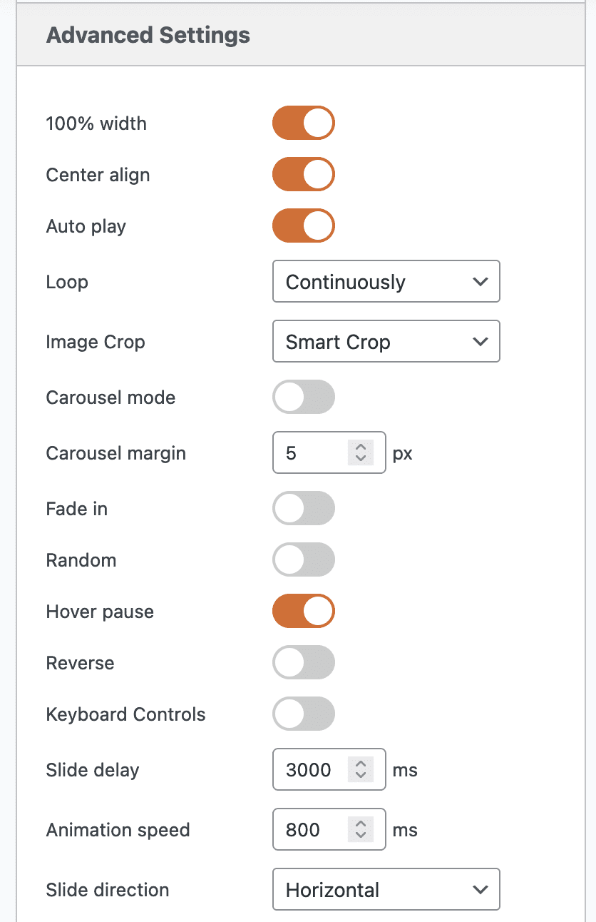 To get the same look for your slideshow, use the settings in these screenshots below. This demo also uses the “Radix” theme. Please note that these screenshots are take with MetaSlider Pro. This slideshow can’t be built with the Free version.