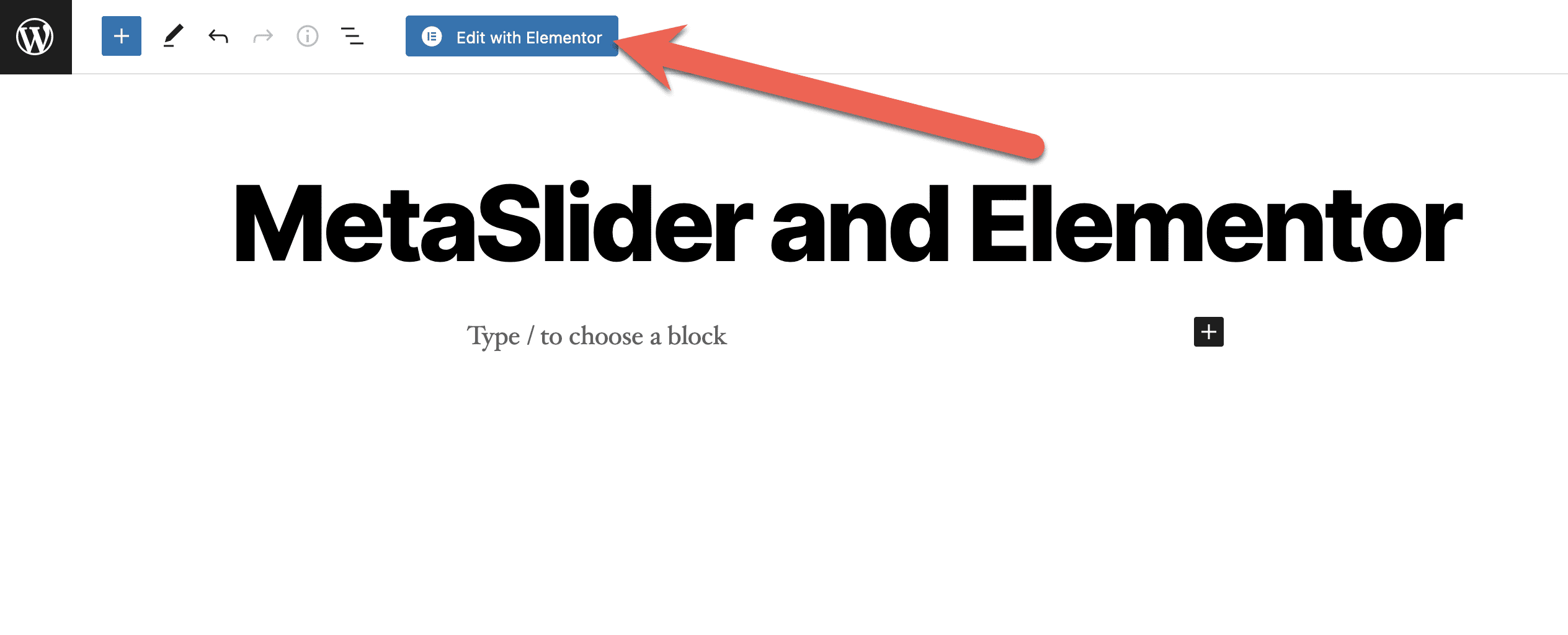 In this image below, I have a page called “MetaSlider and Elementor”. To start designing this page with Elementor, click on the “Edit with Elementor” button.