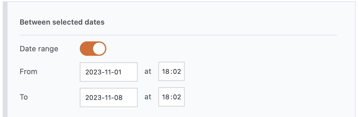 One option for scheduling slides is using “From” and “To” dates. In the image below, the slide will show from November 1 to November 8.