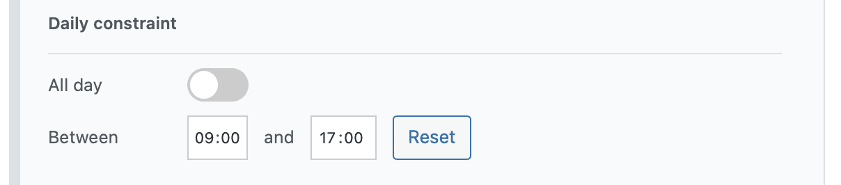 - Show or hide?: You can decide if the schedule constraints will be used to show or hide the slide.