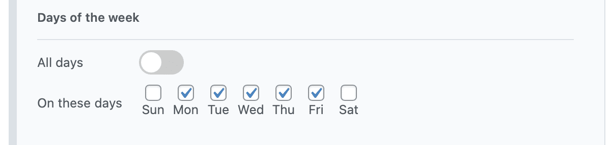 Another option for scheduling slides is using showing slides on certain days of the week. In the image below, the slide will show on weekends and be hidden during the week.