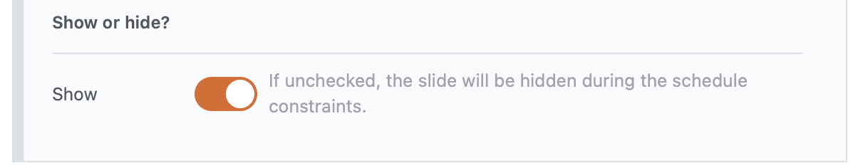 With this setting, you can decide if the schedule constraints will be used to show or hide the slide.