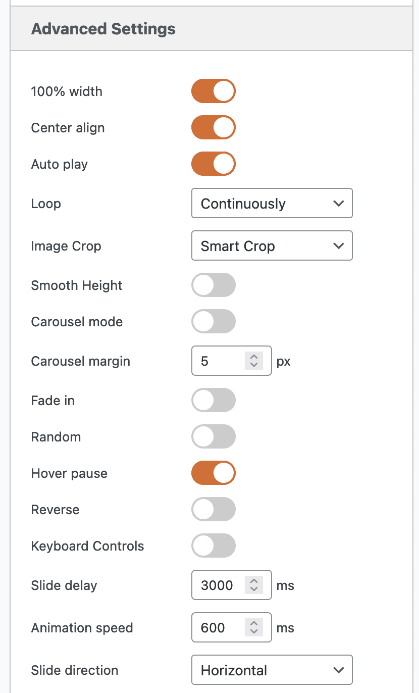 To get the same look for your slideshow, use the settings in these screenshots below. This slideshow is using the “Bubble” theme. Please note that these screenshots are taken with MetaSlider Pro. The settings in the Free version will be slightly different.