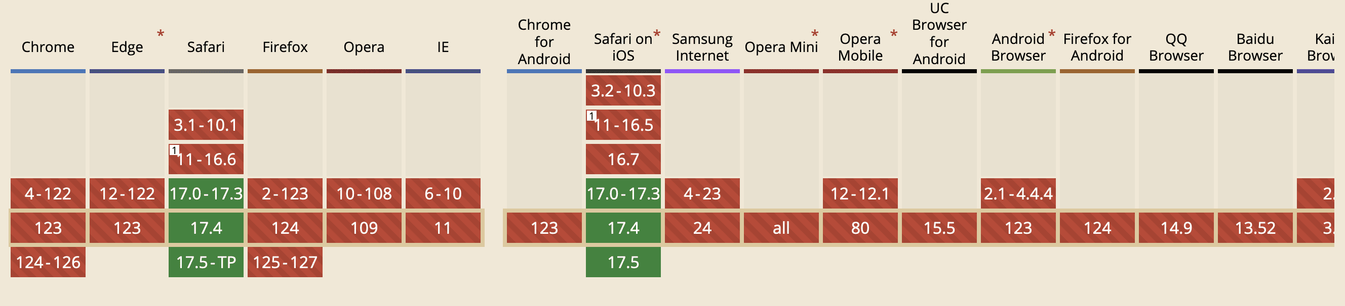 Here’s a current overview of browser support. You can also visit the CanIUse website to get detailed feedback on each browser. This screenshot is taken from CanIUse and shows browsers with HEIC support in green: