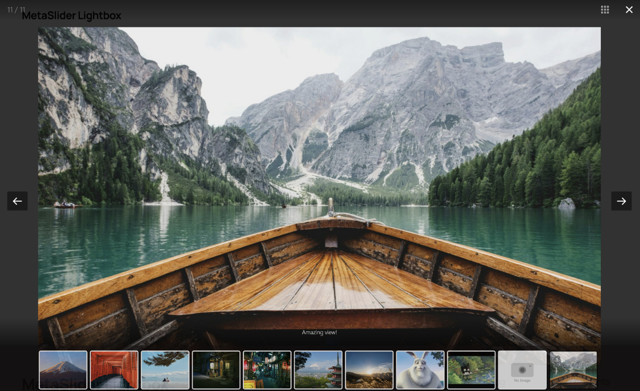 We’ve just released a major update to the MetaSlider Lightbox plugin. This plugin is completely free, and you can use the plugin to turn any slideshow into a full-screen display. This screenshot gives a preview of how the lightbox will appear. You have the option to show the thumbnail navigation, which you can see below the main image.