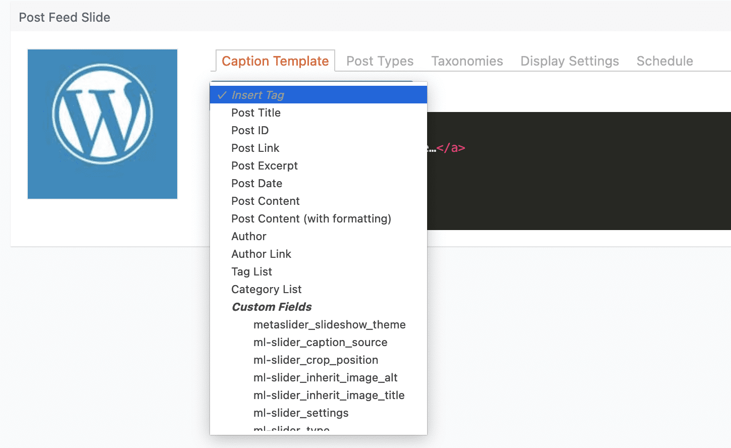 On the “Caption Template” tab, you can choose what shows in the caption and how the content is laid out. For example, you can click on “Post Excerpt” in the image below and the excerpt text will show in the caption.