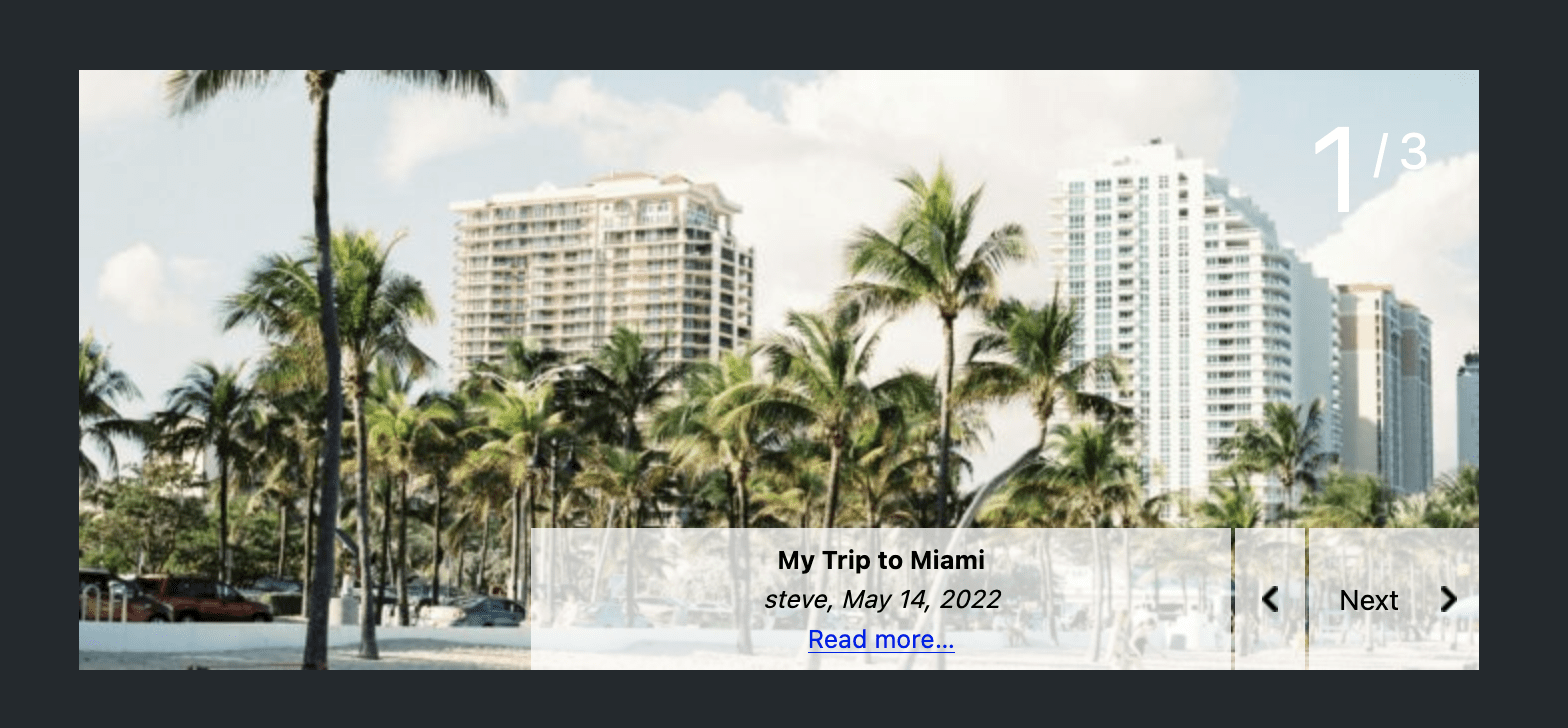 • You will now see your WordPress post slideshow in action. This is the first draft of your carousel and gives you an idea of what it will look like. When you’re ready, you can click the X in the top-right corner and make some changes.