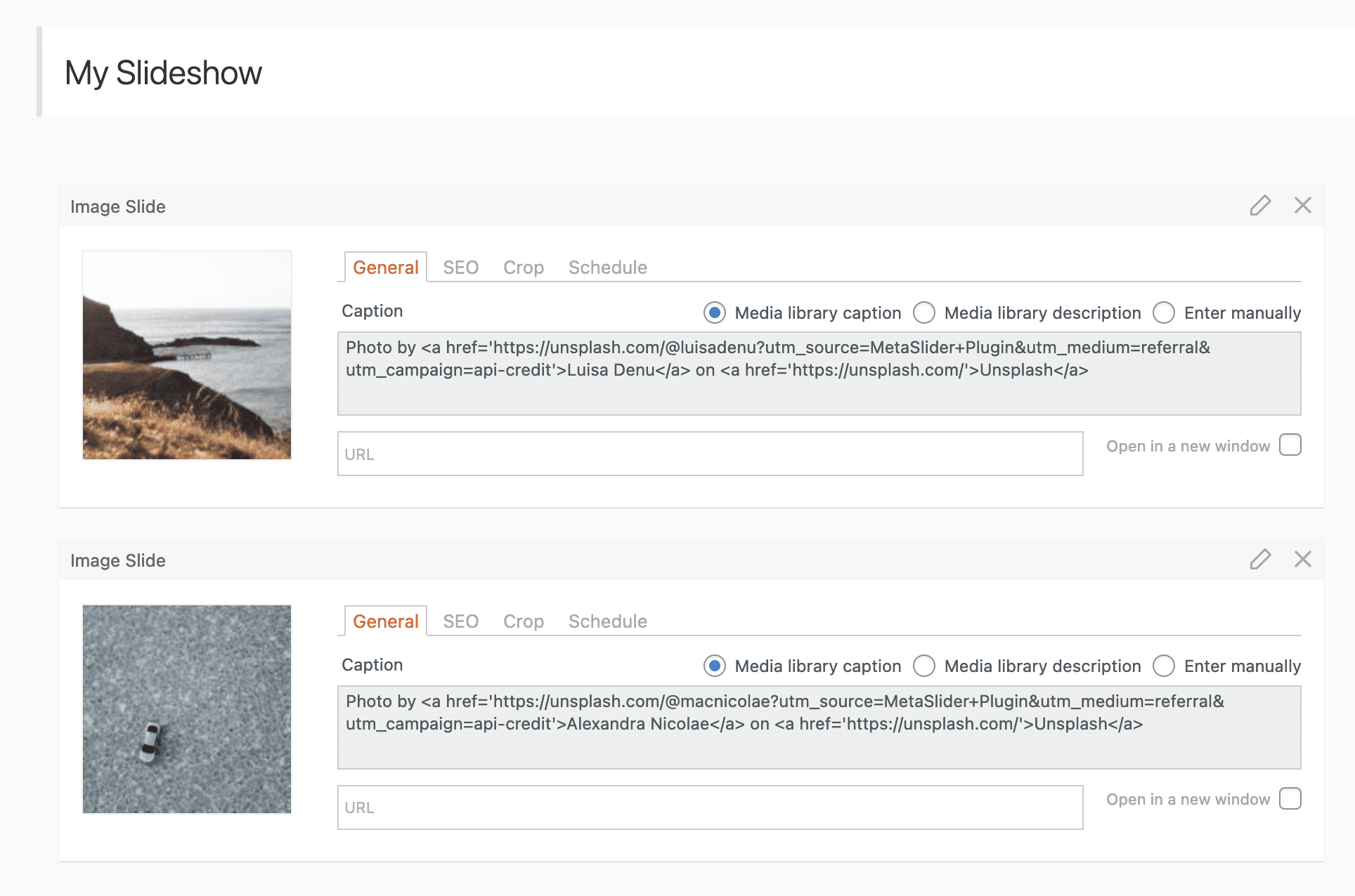 Add MetaSlider slideshow with multiple images from UnSplash