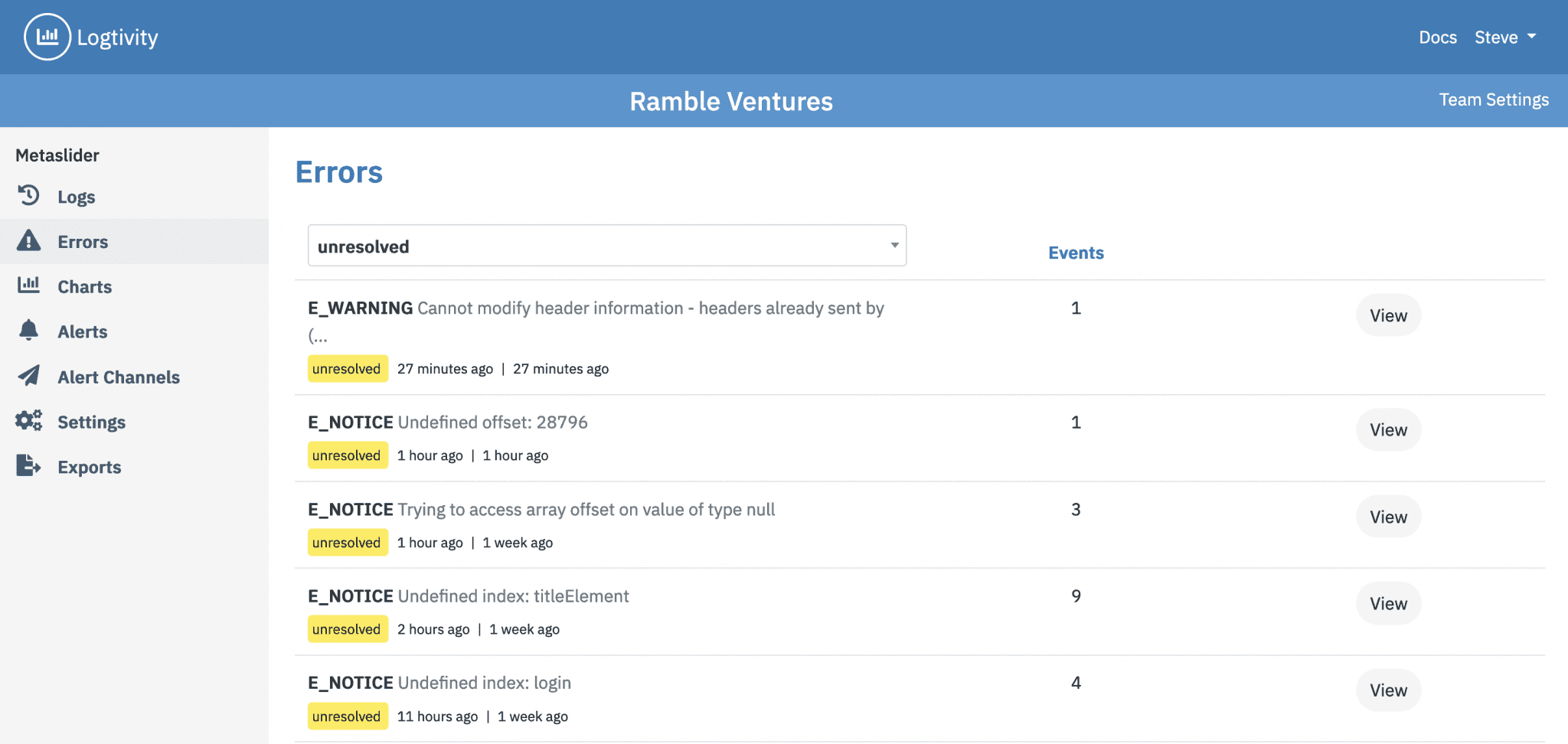 Logtivity records all PHP errors on your sites, including Errors, Warnings, and Notices.