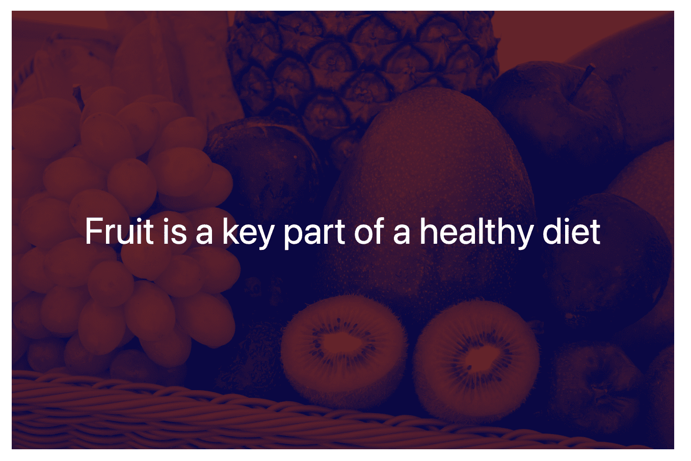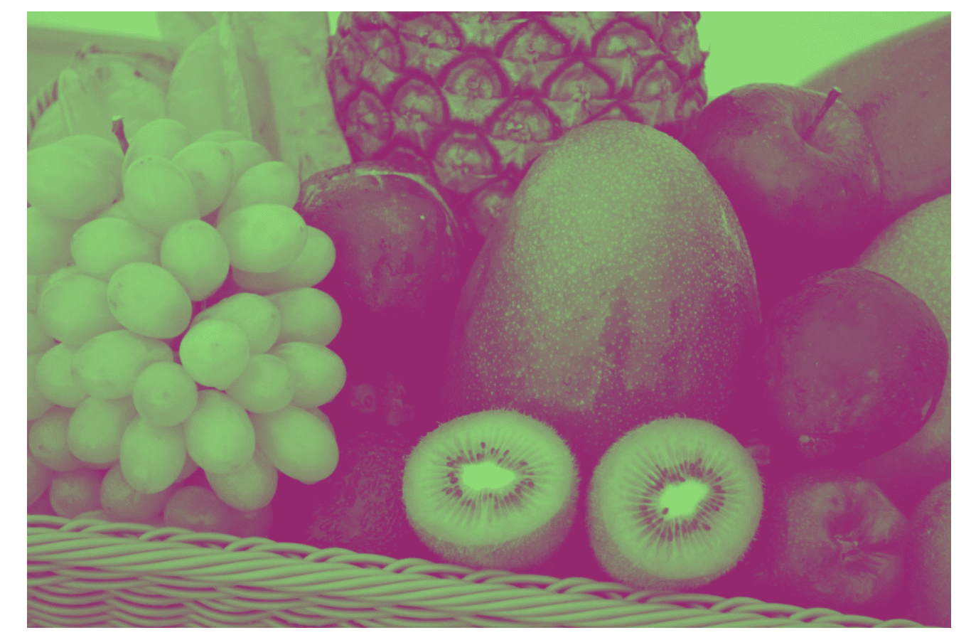 This next screenshot shows the fruit image with the “Purple and green” Duotone option: