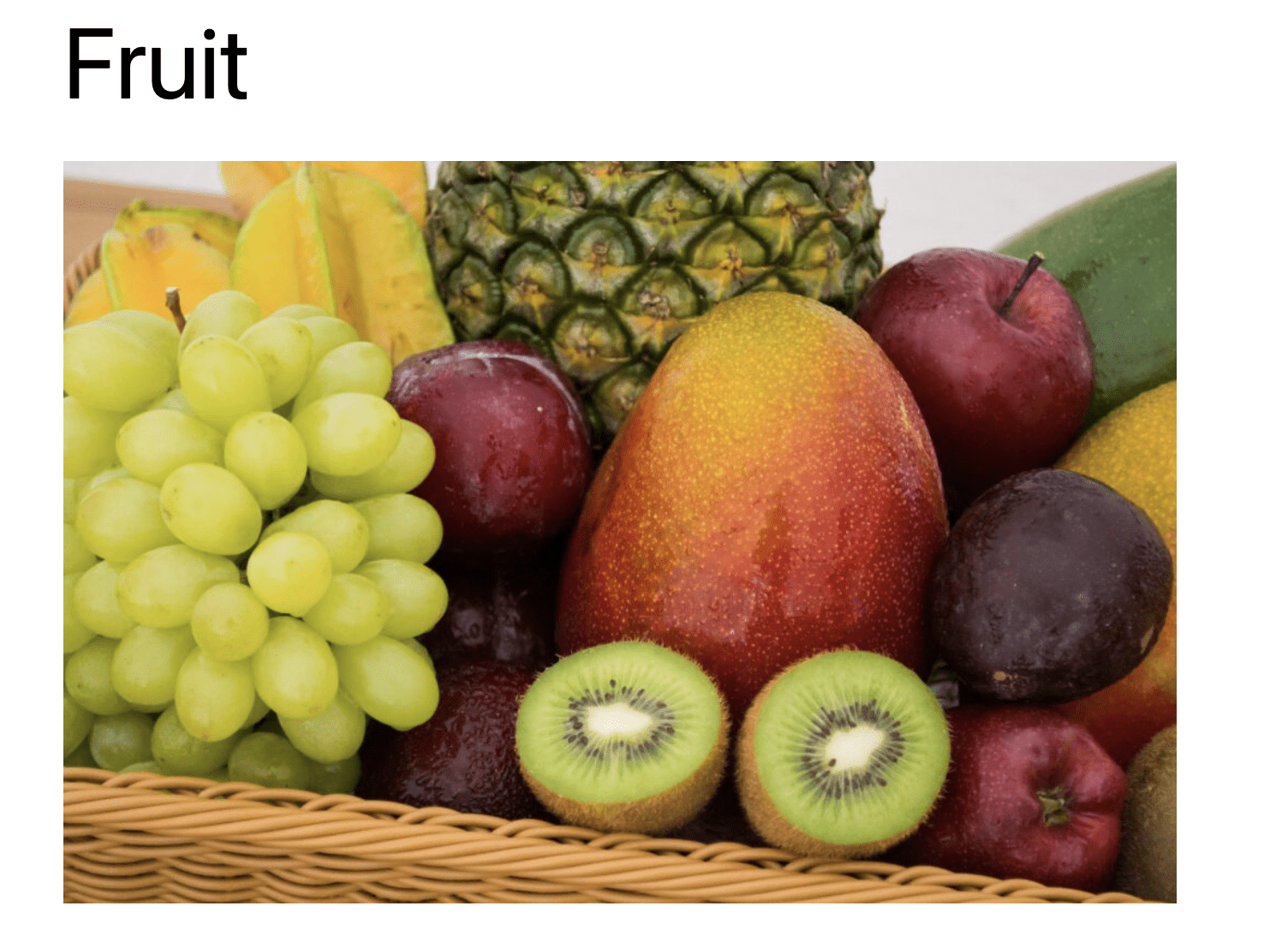 Let’s see how WordPress Duotone filters work. For the first example, I’ll use an image of fruit that I’ve uploaded to WordPress.